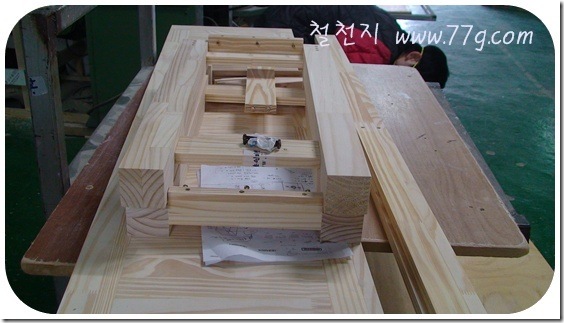 좁은책상다리 가공완료 되었네요, 저기 구멍3개중 2개가 목심 가운데 하나는