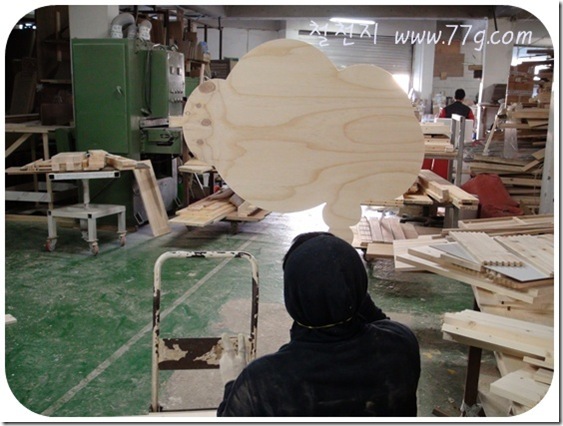 바람처럼 움직이는 송과장이 뒤로 보이는군요.코팅합판과 삼나무 재단 모습입니다.