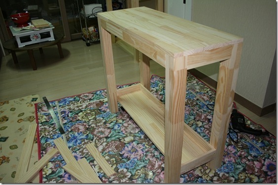 완성입니다. 목재가 배달되어오자마자 샌딩작업을 했지만, 피스 박고, 홈 파내고... 이것저것 작업을 하다보니 마무리로 샌딩작업을 한번 더 해야겠더군요. 모서리도 둥글게 다듬고요... 이제 유리만 얹으면 끝나내요.