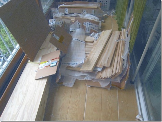 이사할 집에 도착한 어마어마한 양의 목재입니다.
