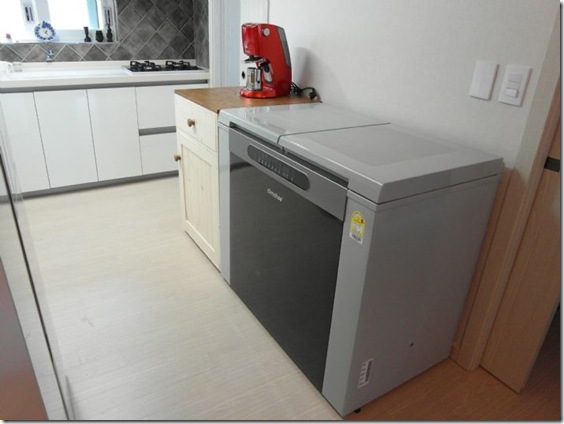 맨 오른쪽 문짝은 앞에있는 세탁기때문에 문이 100% 다 열리지 않습니다.