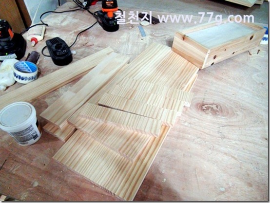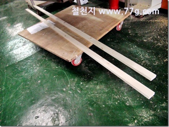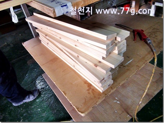 바니쉬 작업을 하고 건조중인 목재들...