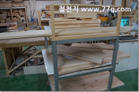 홍송 상판에 샌딩을 하고 있고요.